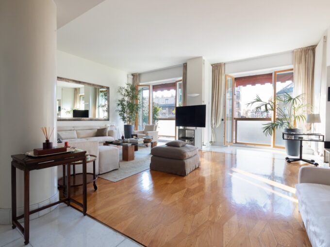 L’appartamento è dotato di impianto di condizionamento aria e riscaldamento centralizzato; ì soffitti sono di grande altezza come meritano gli appartamenti di pregio.